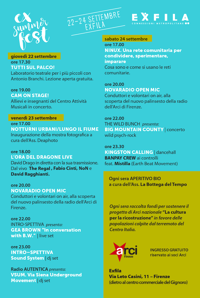 Ex Summer Fest 22-24 Settembre 2016 Vi inviatiamo alla seconda edizione del festival. Partecipate numerosi!